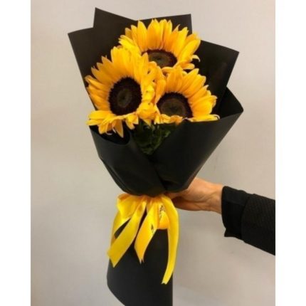 Букет-комплимент с подсолнухом, колосьями ( триникум), альстромерией , солидагой и зеленью