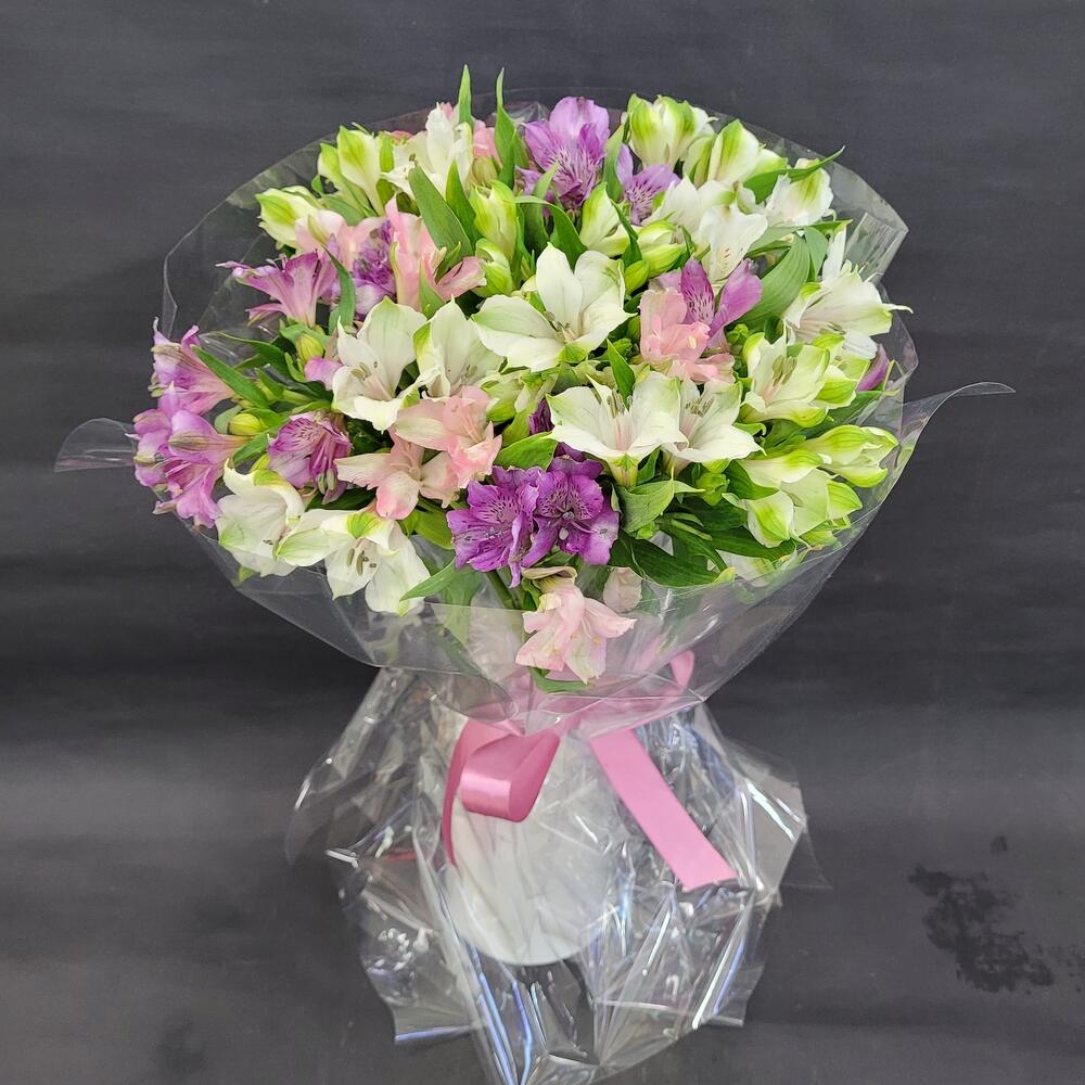 Альстромерия – 15 шт.Упаковка – 2 шт.Лента атласная – 1 шт.