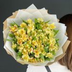 Альстромерия – 15 шт.Лента атласная – 1 шт.бумага крафт – 3 шт.бумага дизайнерская – 3 шт.
