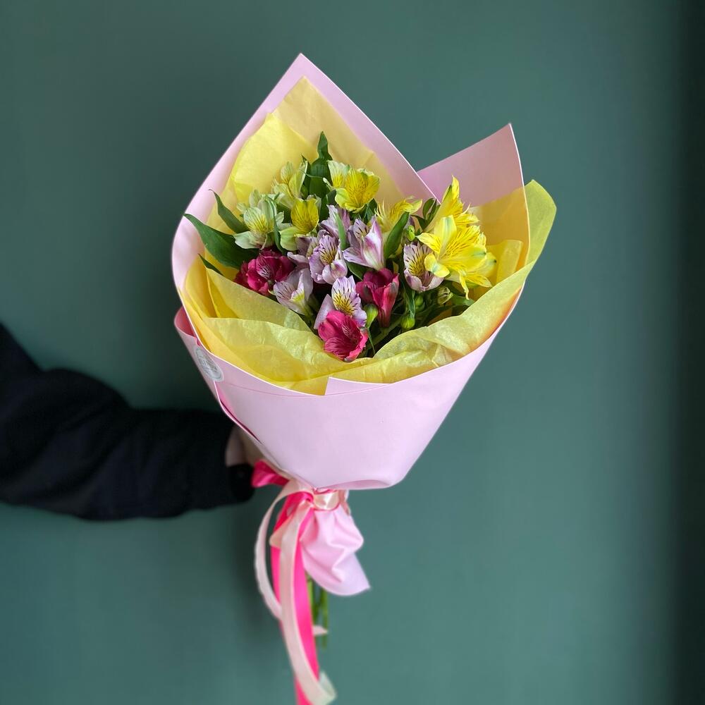Яркий , вызывающий улыбку , моно букет с альстромерией – приятные комплимент коллеге или любимой