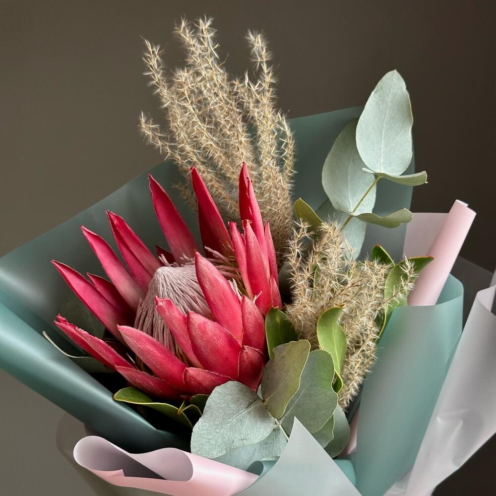 Букет из протеи с эвкалиптом и мискантусом