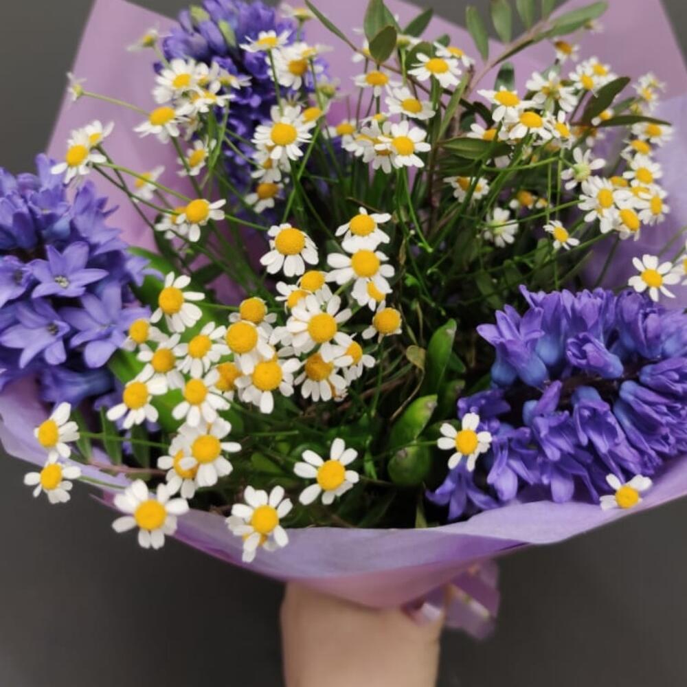 Букет комплимент с гиацинтами и ромашками “Лучик счастья”