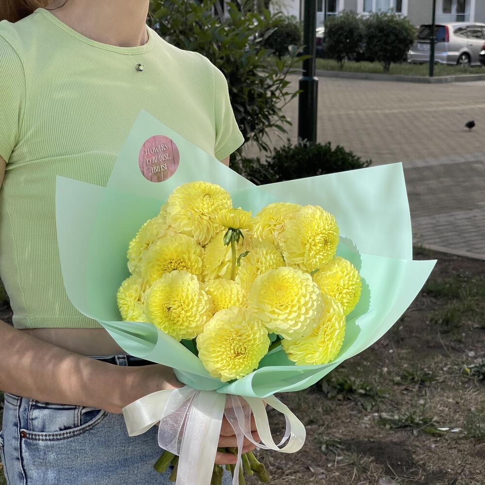 георгины – 17 шт. Упаковка – 1 шт. Атласная лента – 1 шт.