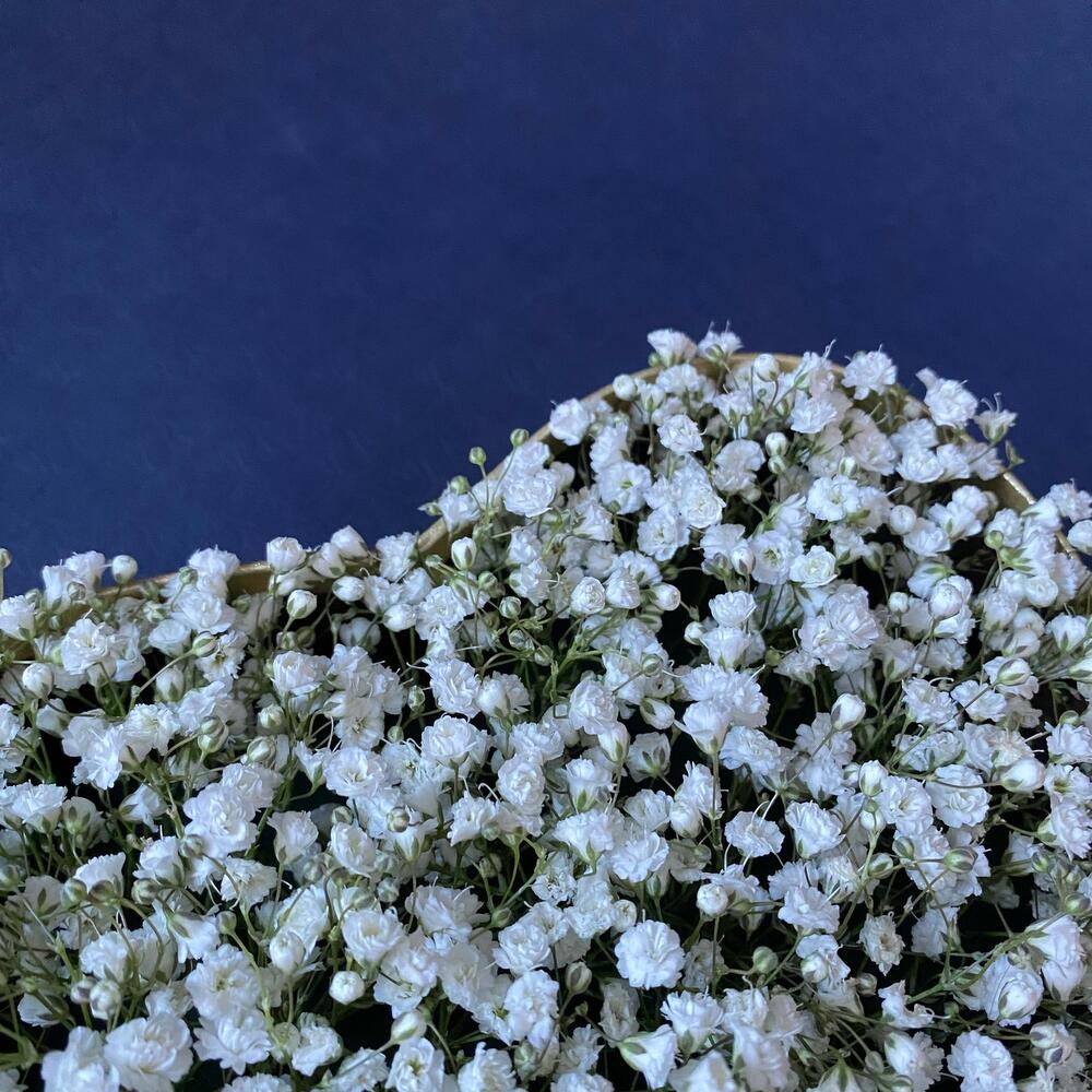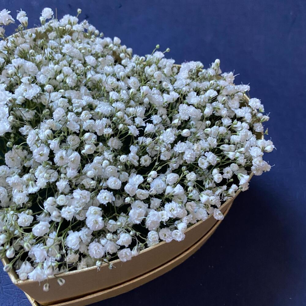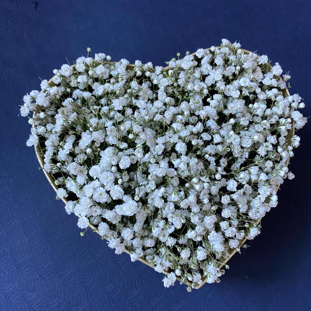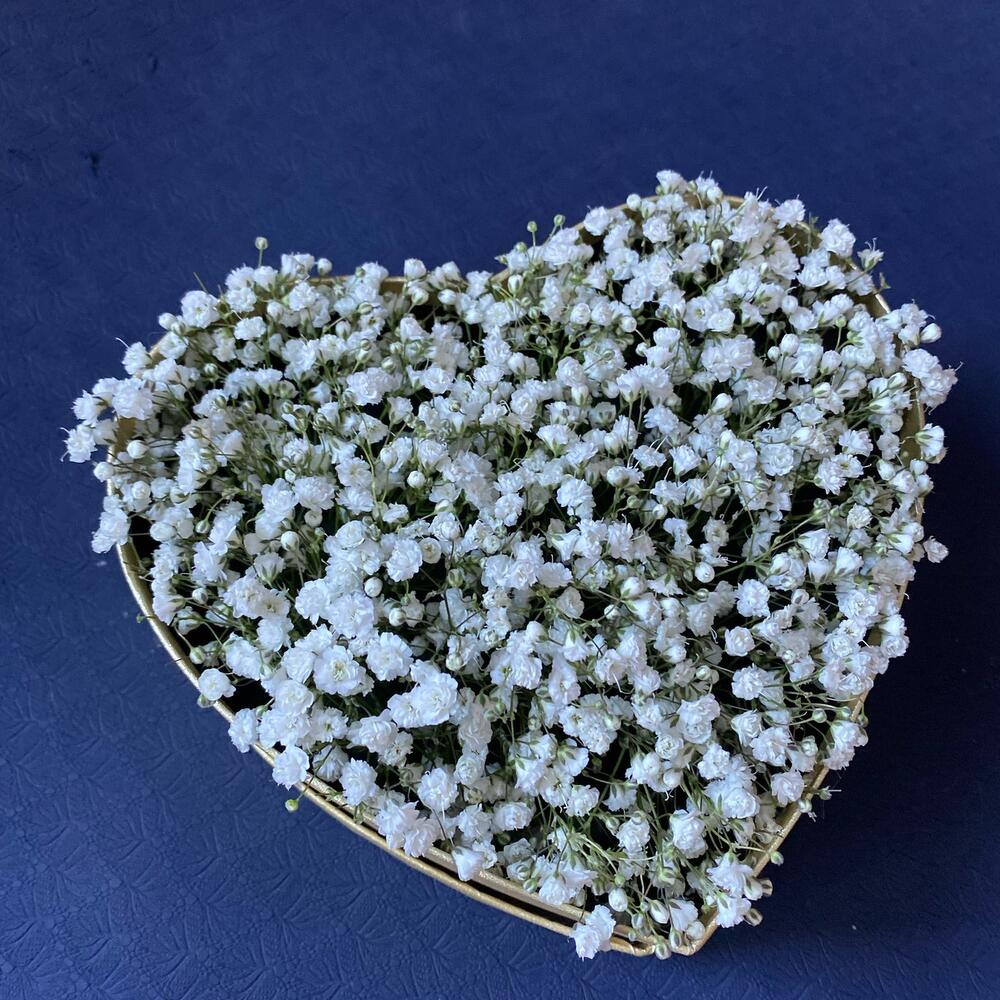 Гипсофила – 15 шт.Коробка сердце – 1 шт.