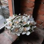 Букет из орхидей, хризантем, гортензий, белых роз и гипсофил