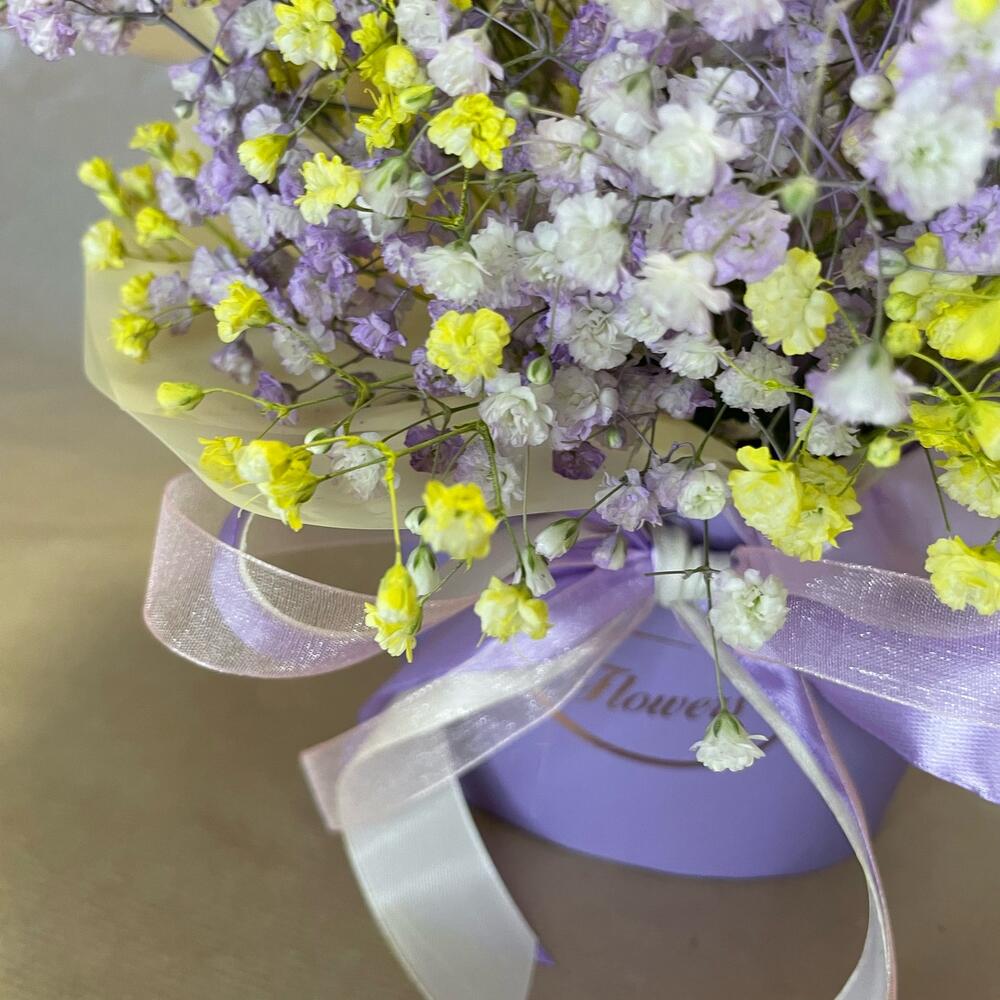 "Атлас☁️" - цветочная композиция с зефиром в деревянном ящике