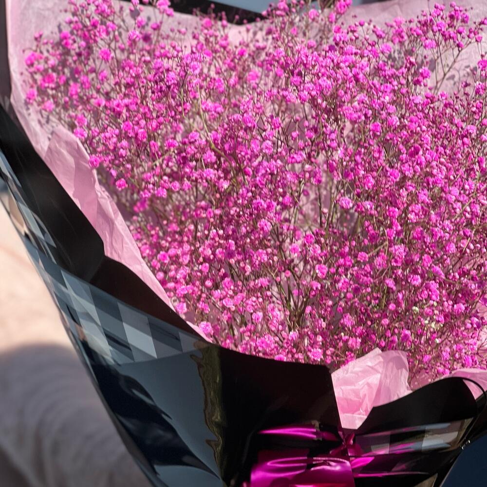 Нежный букет из гипсофилы в стильном оформлении Black Edition