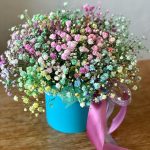 “Сиреневый туман” – композиция из гипсофилы в шляпной коробке