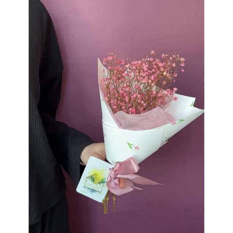 НЕ ЗАВЯНЕТНЕ НУЖНА ВОДАНАТУРАЛЬНЫЕ ЦВЕТЫБукет из стабилизированной гипсофилы.Обычная гипсофила через неделю засыхает, цветочки становятся менее привлекательными.Стабилизированные цветы же останутся такими же и спустя год.Букет не нужно ставить в воду. Стабилизированные цветы – это живые, которые сразу после срезки поместили в специальную жидкость на основе глицерина. Процесс нахождения в нём называют стабилизацией.В результате процесса цветок сохраняет свой первоначальный внешний вид на долгое время. Лепестки эластичные и не сухие!РАЗМЕРЫ:Ширина с упаковкой 21 см, высота 29 смВ подарок к заказу идет открыточка на пару слов.Дизайн подбираю под повод:)