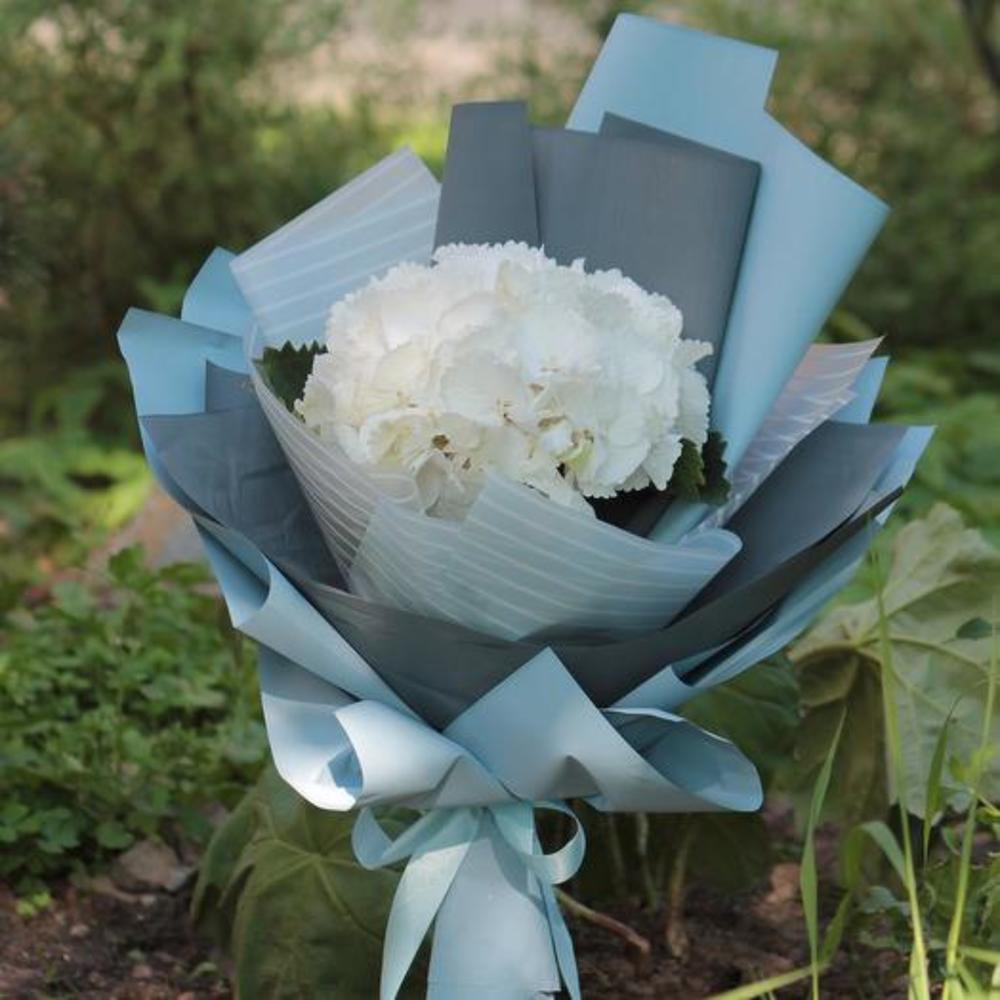Гортензия белая в дизайнерской упаковке “Антуанетта”