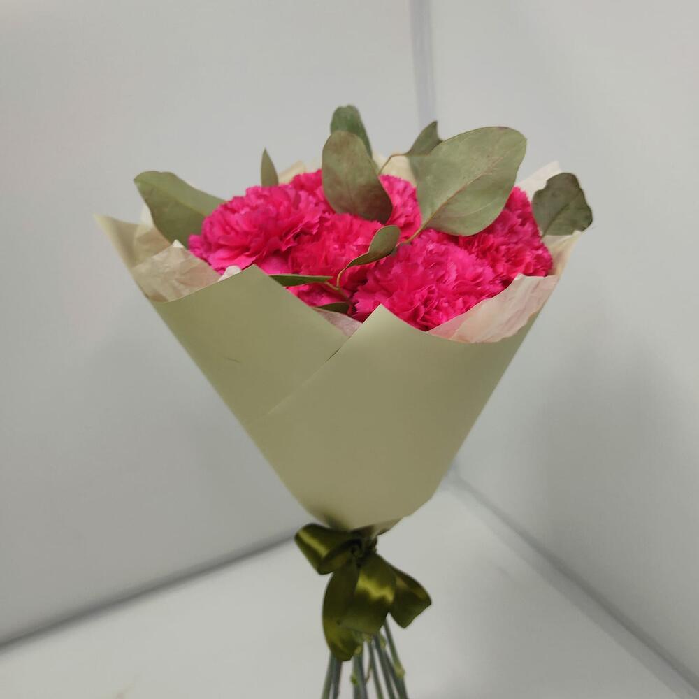 гвоздики – 9 шт.Эвкалипт – 1 шт.Дизайнерская упаковка – 1 шт.