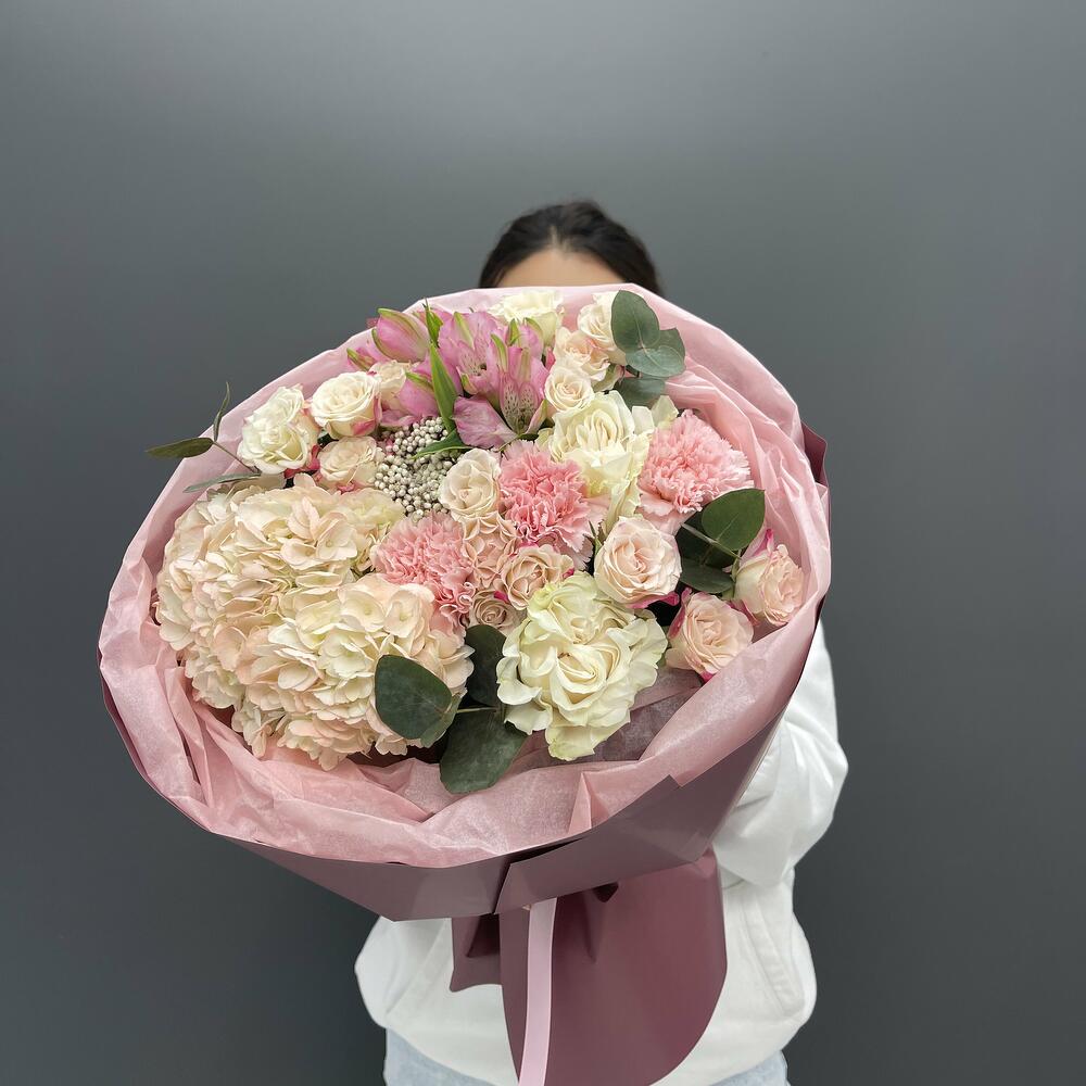 Гвоздики, Кустовые розы, Лизиантусы, Пионовидные розы, Розы