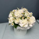 Гвоздика – 15 шт.Тишью – 1 шт.Матрикария – 2 шт.Коробка – 1 шт.Оазис флористический – 1 шт.