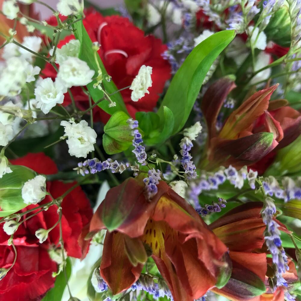 Категории: Альстромерии, Гвоздики, Гипсофила, Хризантемы