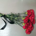 Лента атласная – 1 шт.Гвоздика красная – 10 шт.