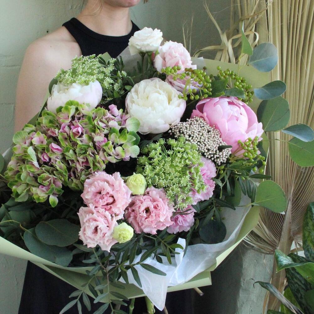 Категории: Гвоздики, Гортензии, Лизиантусы, Пионы