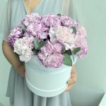 Шляпная коробка фиолетовых гвоздик (N 130)