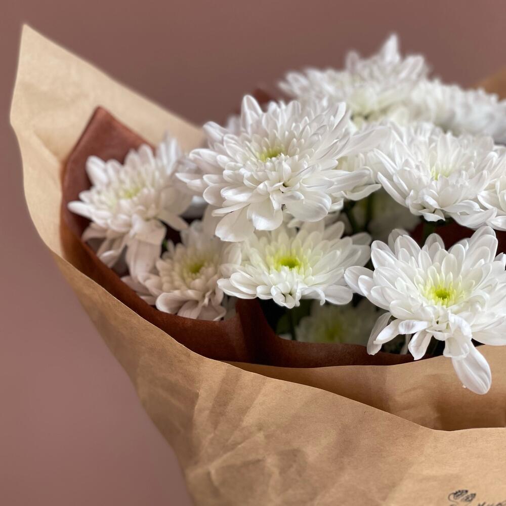 Хризантема – 3 шт.Лента атласная – 1 шт.Тишью – 1 шт.Крафт – 1 шт.