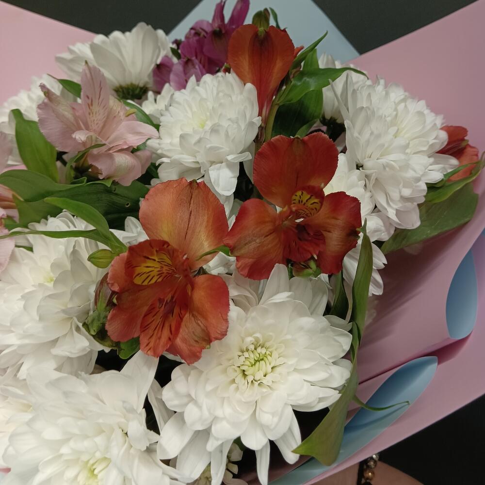 Букет из хризантем кустовых и альстромерий