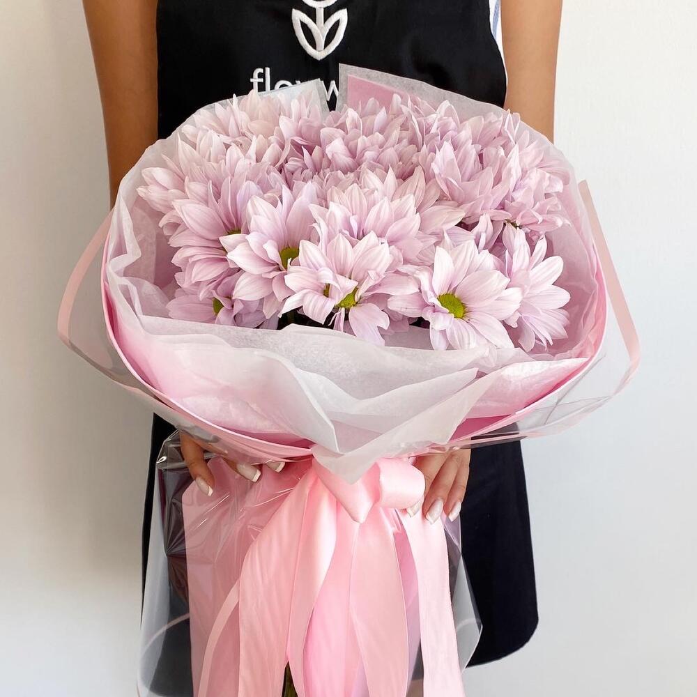 Стоит купить букет хризантем для возлюбленной, такой подарок станет отличным способом выразить симпатию. Универсальный цветок можно дарить на день рождения, 8 Марта, День влюбленных, Новый год и любой другой праздник. Стильно оформленный букет хризантем помогает выразить благодарность, уважение, признательность, поэтому его часто дарят учителям, преподавателям, коллегам, знакомым.Уважаемые покупатели! Пожалуйста обратите ваше внимание на размер букета при заказе! Он учитывается вместе с упаковкой Чтобы наши прекрасные букеты дольше радовали получателя рекомендуем вам: ⭐Обновить срез букета перед тем, как поставить его в воду⭐Ставить цветы в прохладную проточную воду ⭐Меняйте воду в вазу каждый день⭐Не забывайте подрезать цветы, перед тем, как ставить их в воду⭐Не ставить у отопительных приборов и на сквозняке Фирменный стиль наших букетов разработан специально так, чтобы упаковку не нужно было снимать, так как она придаёт целостность букету и прекрасно держится в вазе