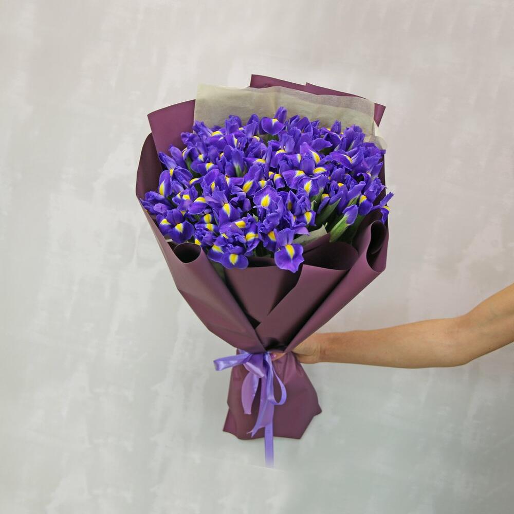 Букет из 51 синего ириса в стильной упаковке