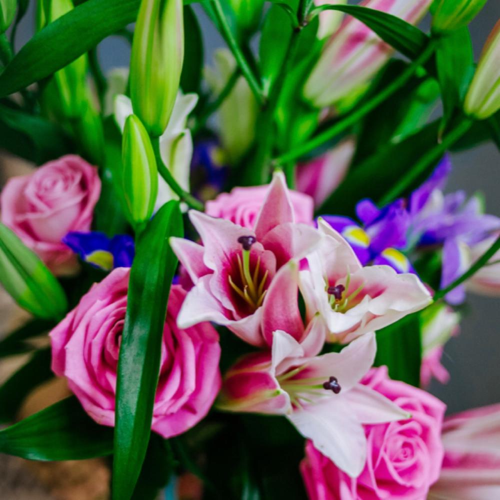 Букет из лилий, роз и ирисов