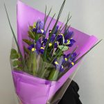 Букет из ярких фиолетовых ирисов и стойкой альстромерии