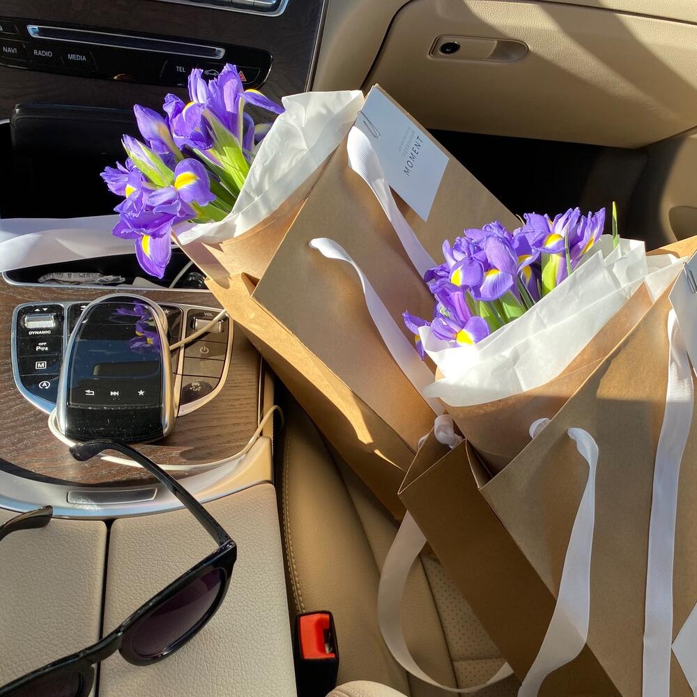 Тишью – 2 шт.Крафт – 2 шт.Карточка для подписи – 1 шт.ирисы – 9 шт.крафтовый пакет – 1 шт.