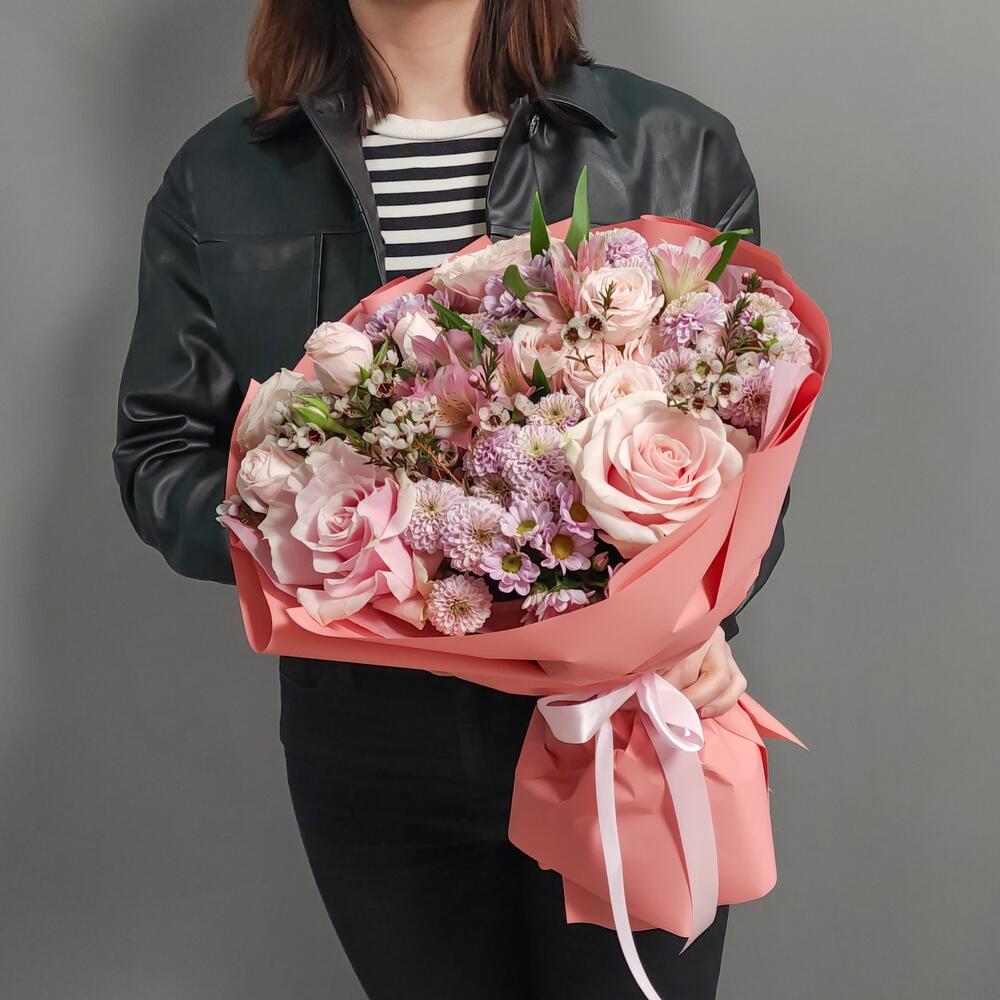 Гвоздики, Кустовые розы, Лизиантусы, Пионовидные розы, Розы