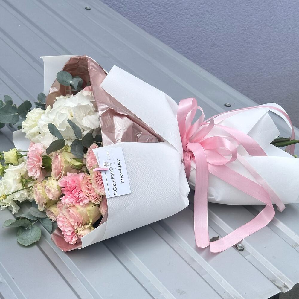 Гвоздики, Кустовые розы, Лизиантусы, Пионовидные розы, Розы