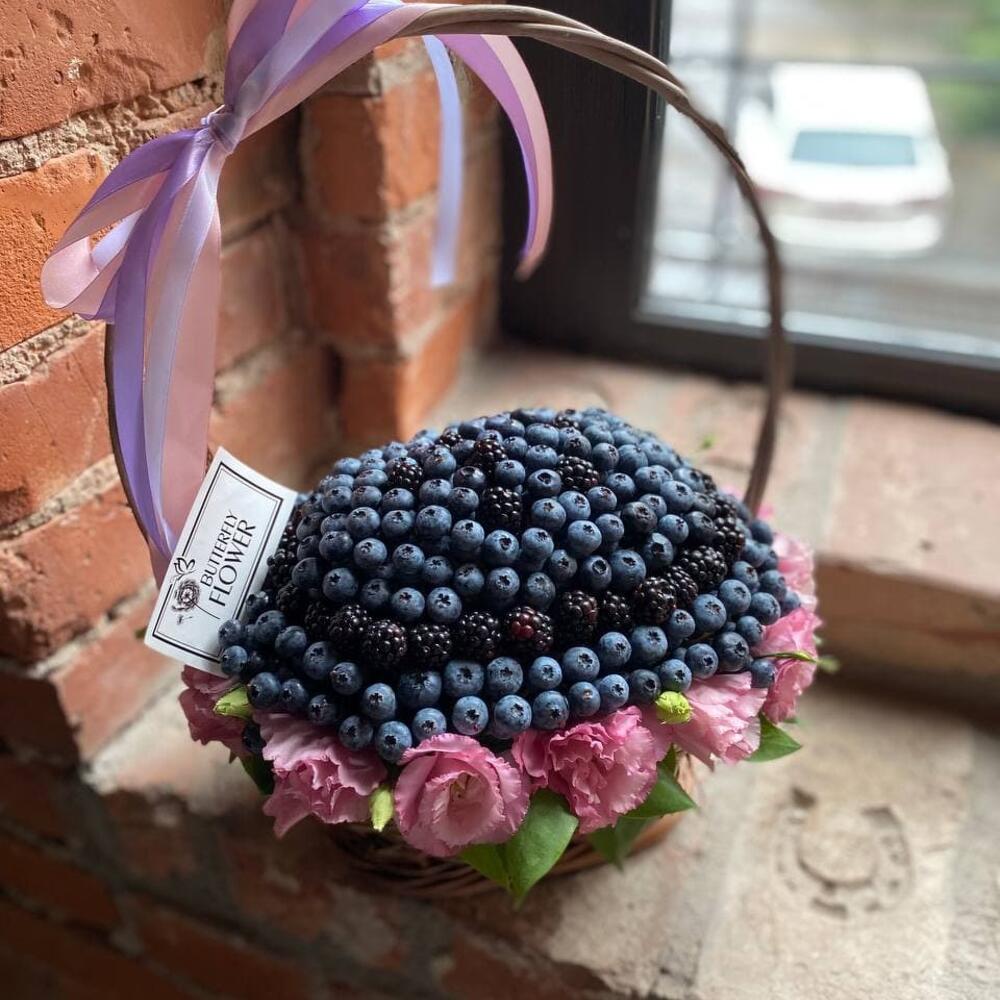 Корзинка из ягод ежевики, голубики и цветов “Лесная фея”