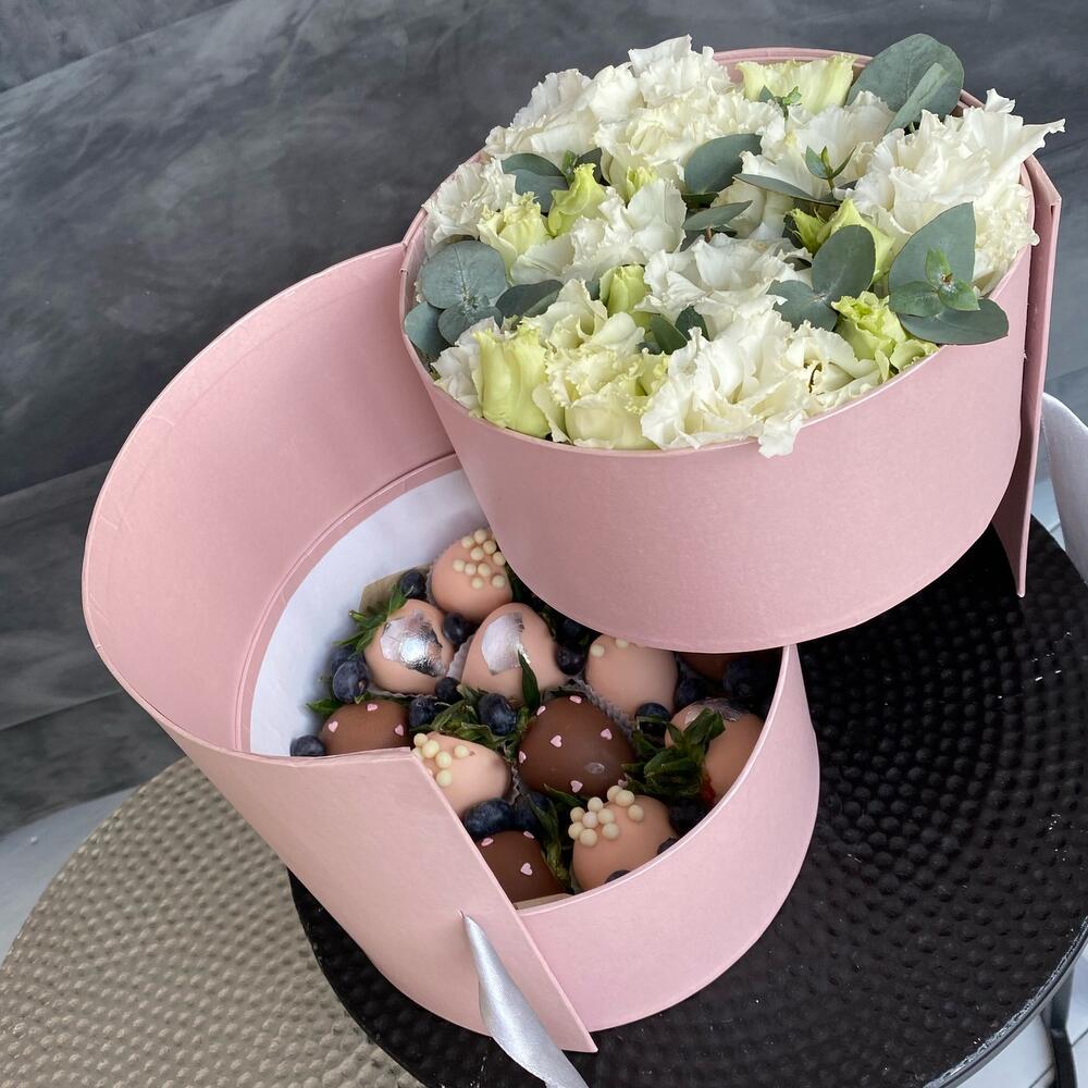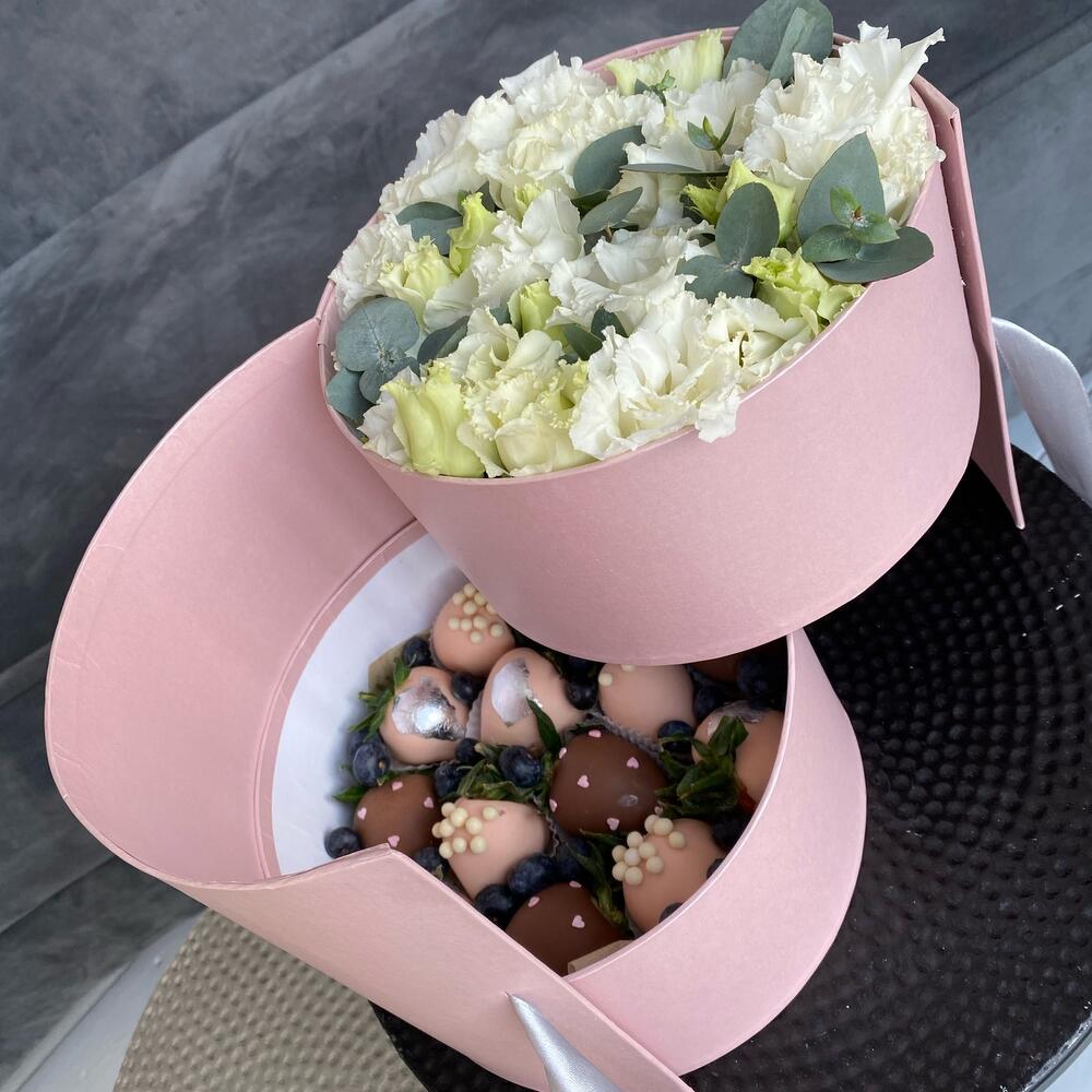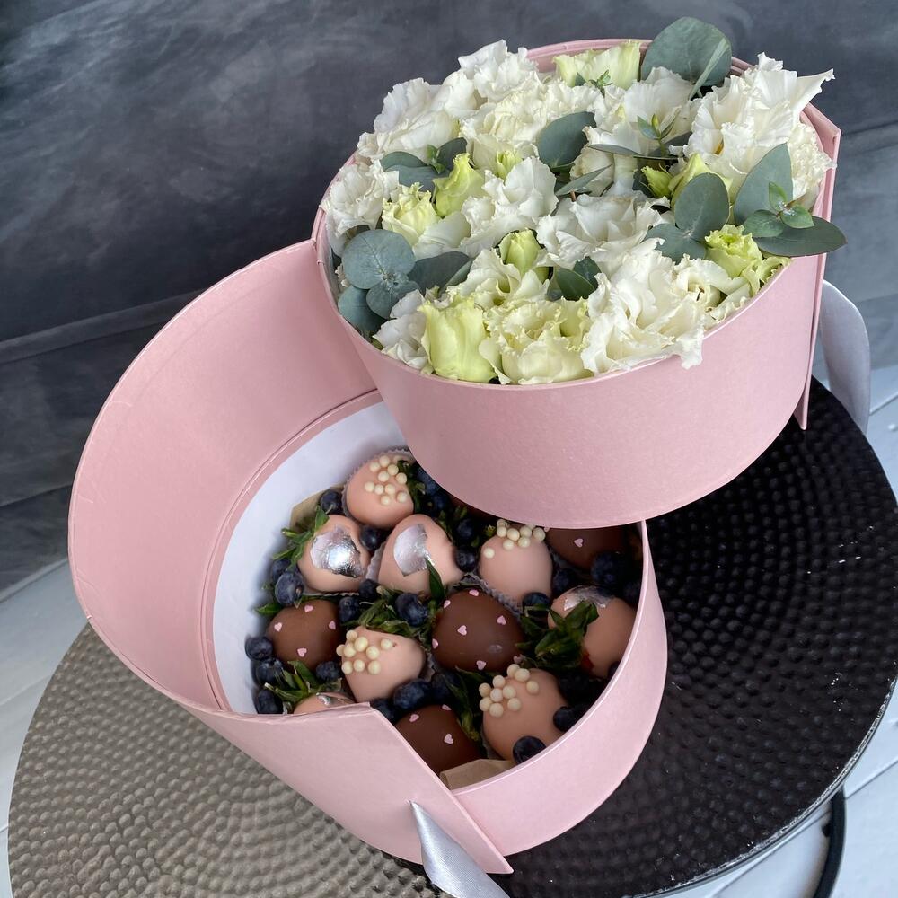 эустома белая – 5 шт.Клубника в шоколаде callebaut (бельгия) – 12 шт.