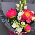 ВЕСНА В ПЕТЕРБУРГЕ премиум букет из пионов и эустомы