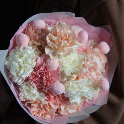 Букет из нежных диантусов с шариками краспедии