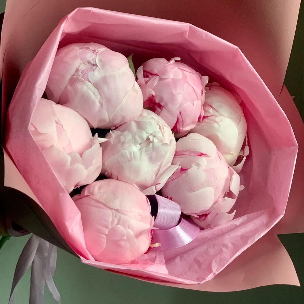 Лента – 3 шт.Упаковка дизайнерская – 4 шт.пион рене хортенс – 7 шт.
