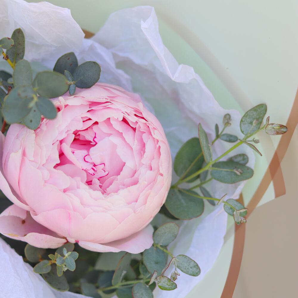Комплимент с пионом и эвкалиптом
