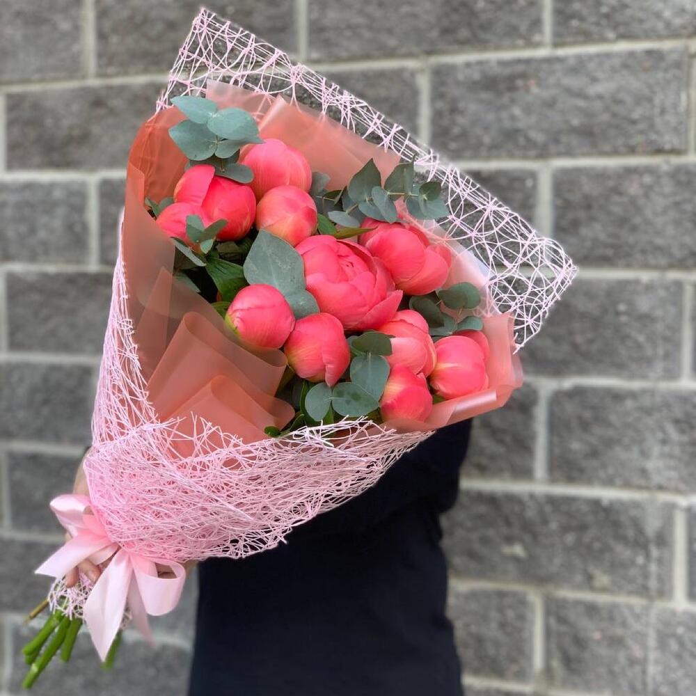 Букет из ранункулюсов с эвкалиптом