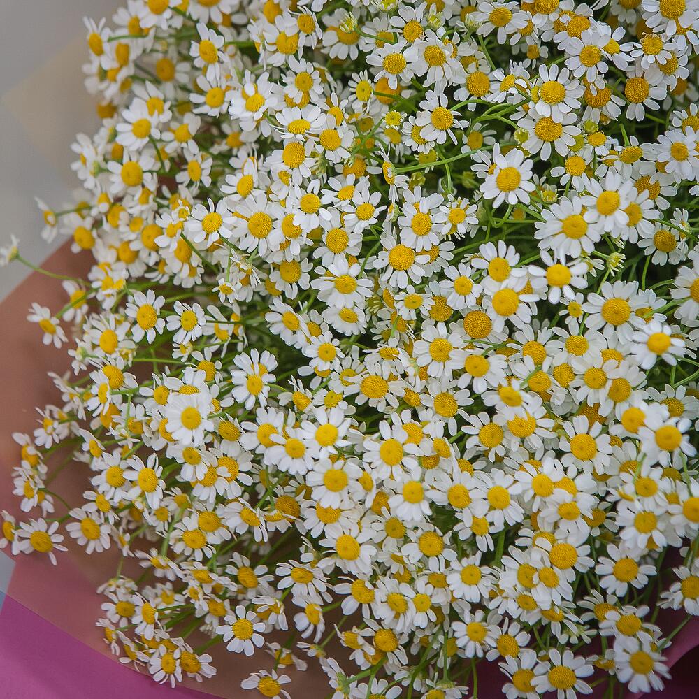 Ромашка матрикария – 51 шт.Атласная лента – 1 шт.