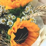 Букет с подсолнухами и ромашками в крафте