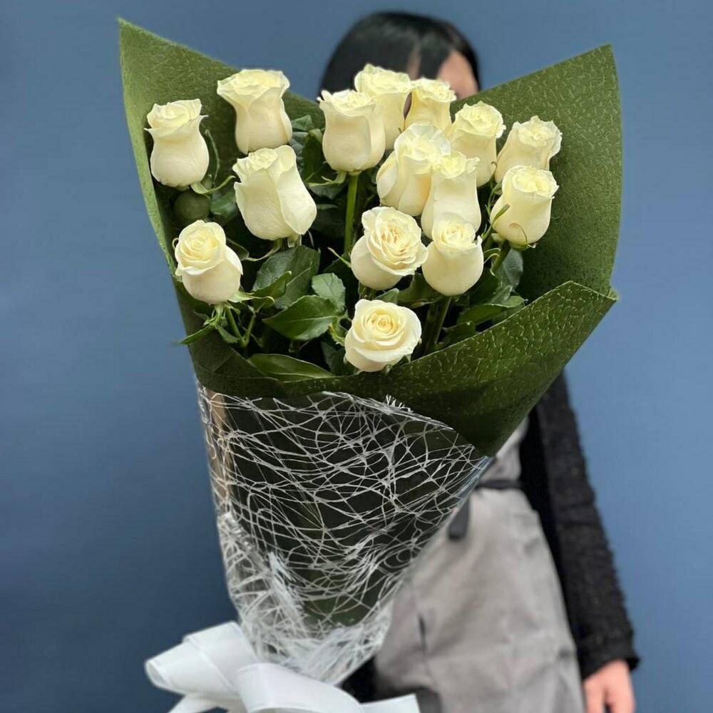 Нежный классический букет из роз сорта Мондиаль станет замечательным подарком вашим близким по поводу и без