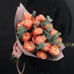 15 пионовидных кустовых роз монобукет