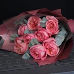 9 пионовидных роз сильва Пинк с эвкалиптом