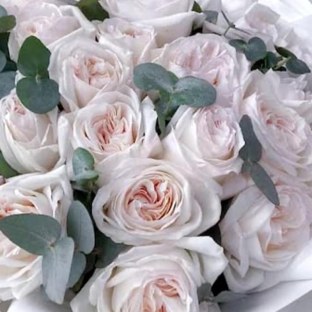 Эвкалипт – 2 шт.Упаковка дизайнерская – 2 шт.роза вайт о хара( ароматная) – 25 шт.