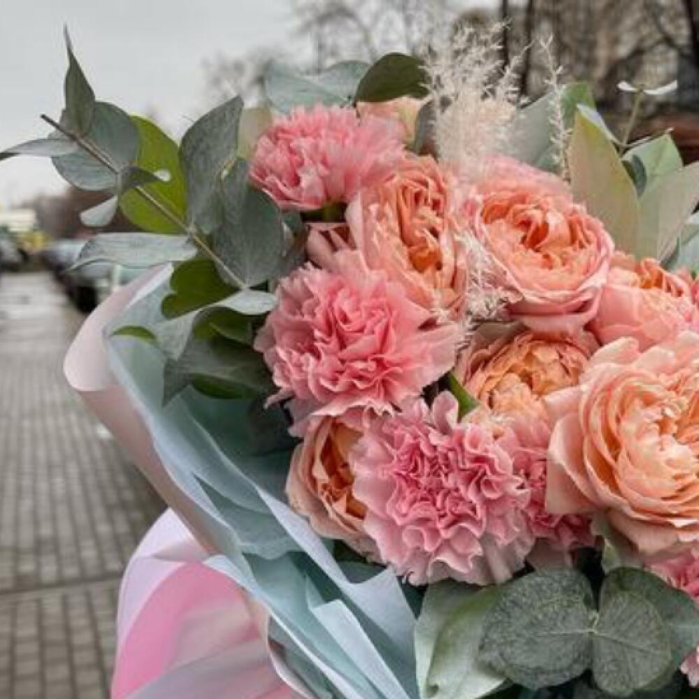Категории: Гвоздики, Пионовидные розы, Розы, Сухоцвет