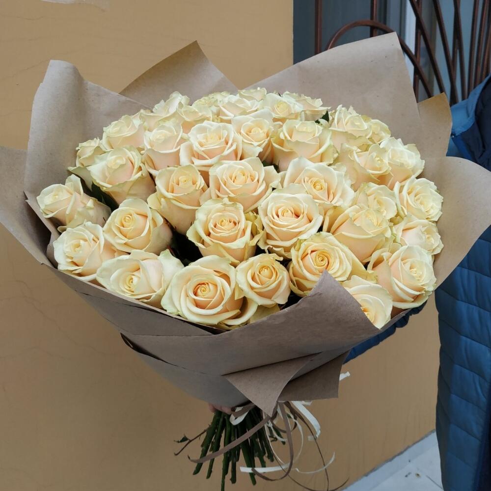 роза украинская кремовая – 51 шт. оформление крафт бумага – 1 шт.