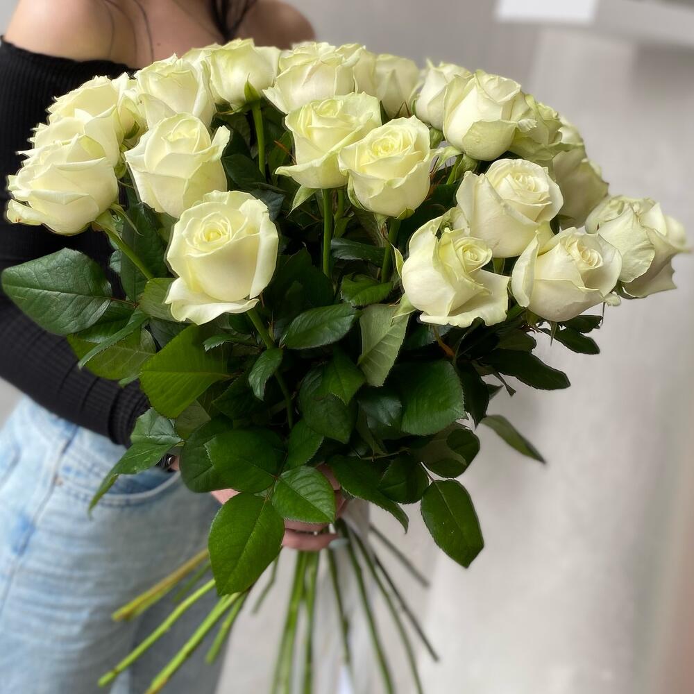 Букет белых роз 25 штук 60 см