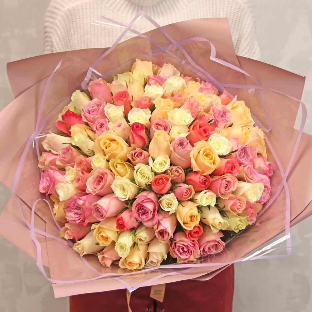 Букет из 101 розы нежный микс 35-40 см (Кения)