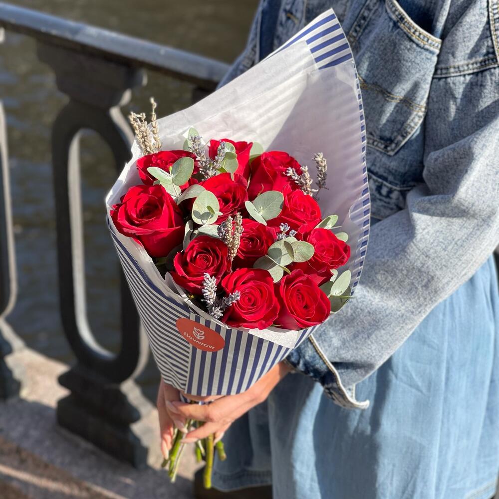 Букет из 11 красных роз “Морская полоска”