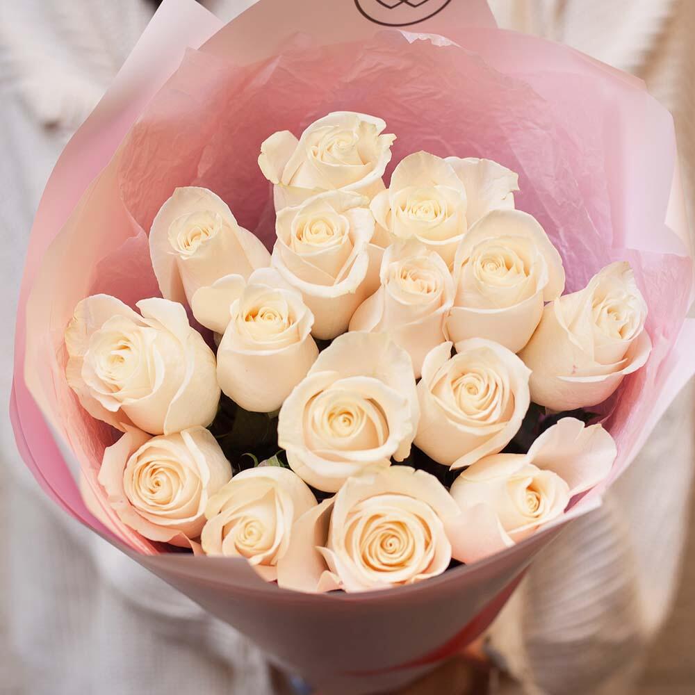 Букет из 15 белых роз 50 см