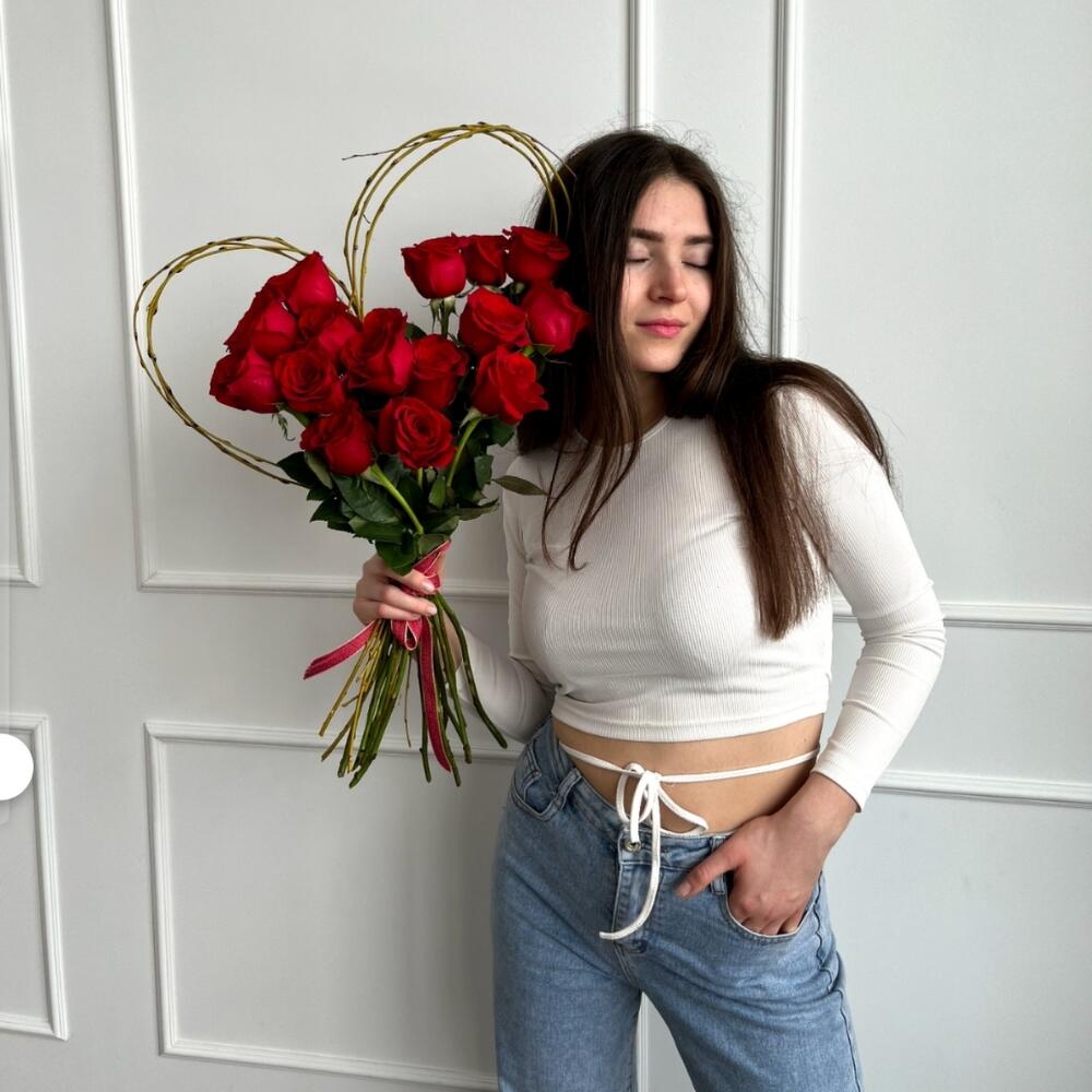 Букет из 15 красных роз "Сердечко"